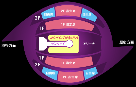 アリーナのスタンディング(自由エリア)は、指定席および自由席どちらのチケットをお持ちの方でも入場可能です。
